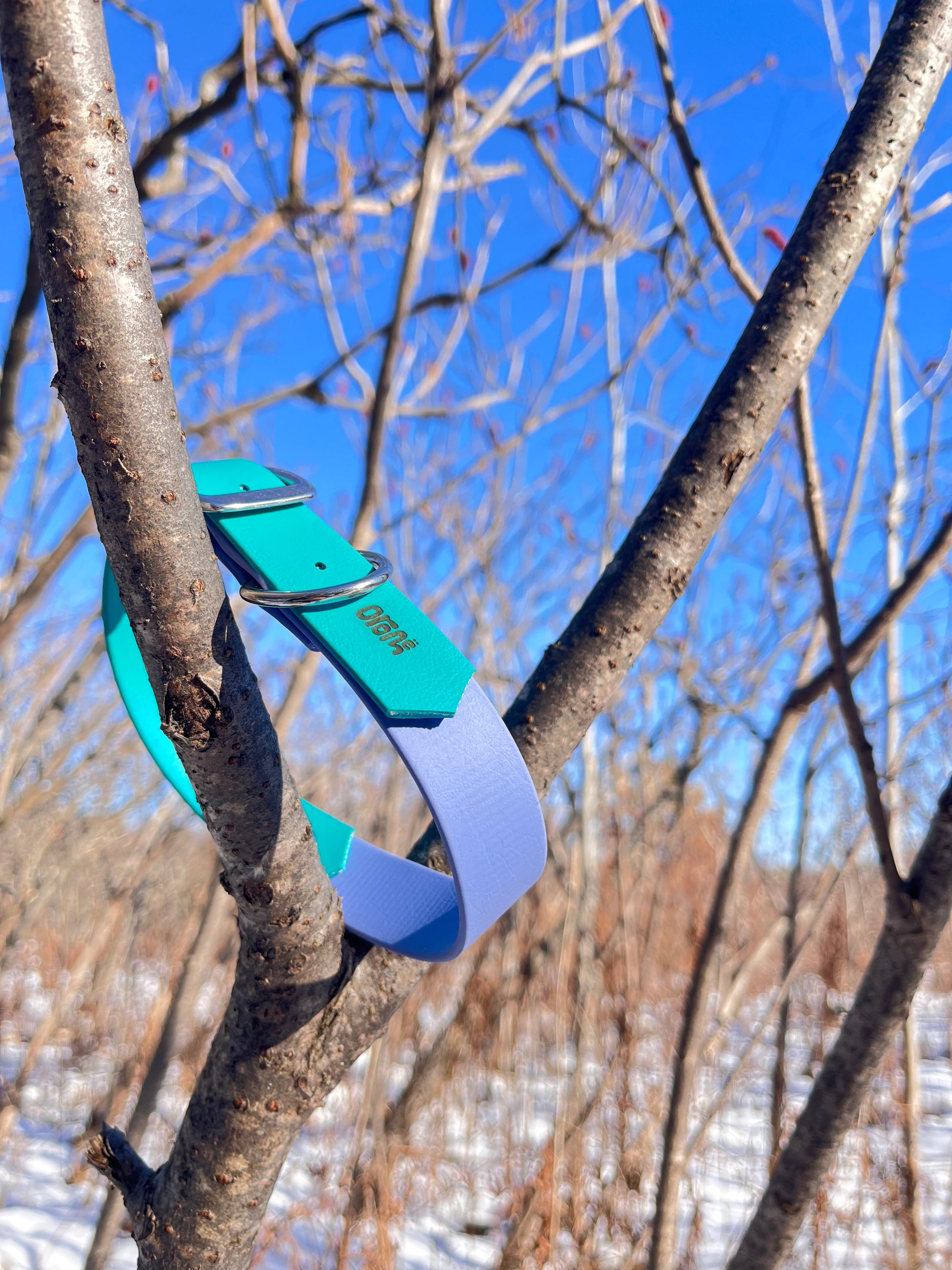 An everyday collar, for walks in town as well as in the forest. Made from 25 mm-wide, 2.5 mm-thick BioThane, it's strong and durable over time.